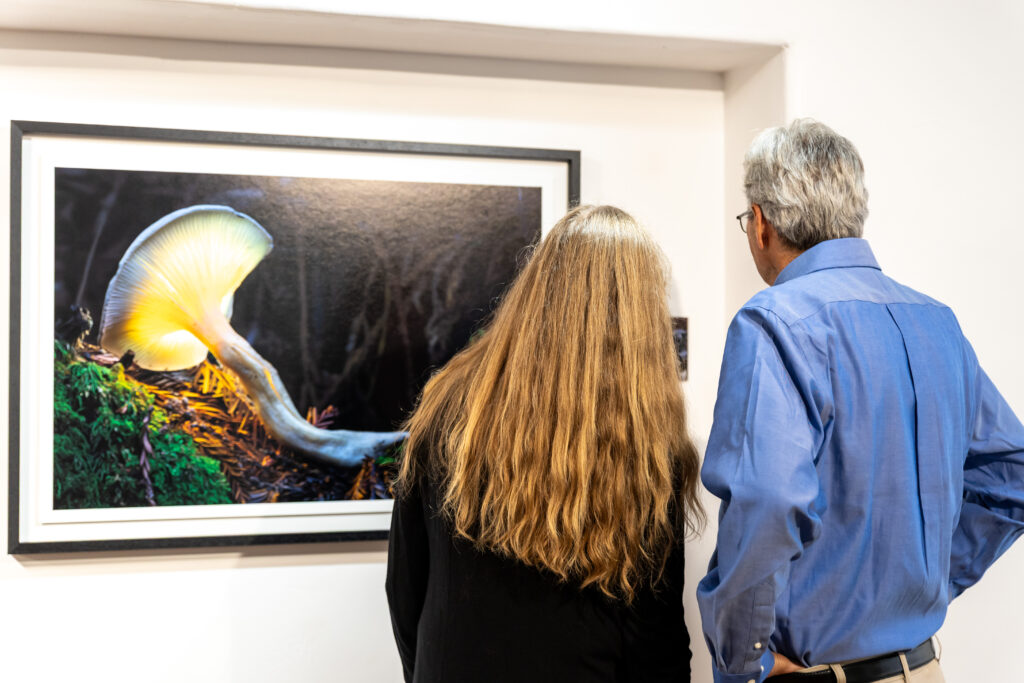 Christopher Allwine’s Mushroom series is a whimsical exploration of fungi through his surreal and signature artistic lens. Created over the course of several years (and many miles hiked in the forest), this work exemplifies his ability to transform everyday natural elements into captivating visual experiences. The bold colors and ethereal luminosity create a dreamlike quality that blurs the line between the familiar and the fantastical.