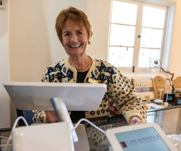 Volunteers are the first point of contact for patrons who visit Casa Romantica’s historic home and gardens daily. A variety of roles are available as front desk greeters, tour and gallery docents, administrative assistants, and gardeners. Volunteers also support our staff at performances and public events, fulfilling duties as ticketing personnel, ushers, and food and beverage personnel.